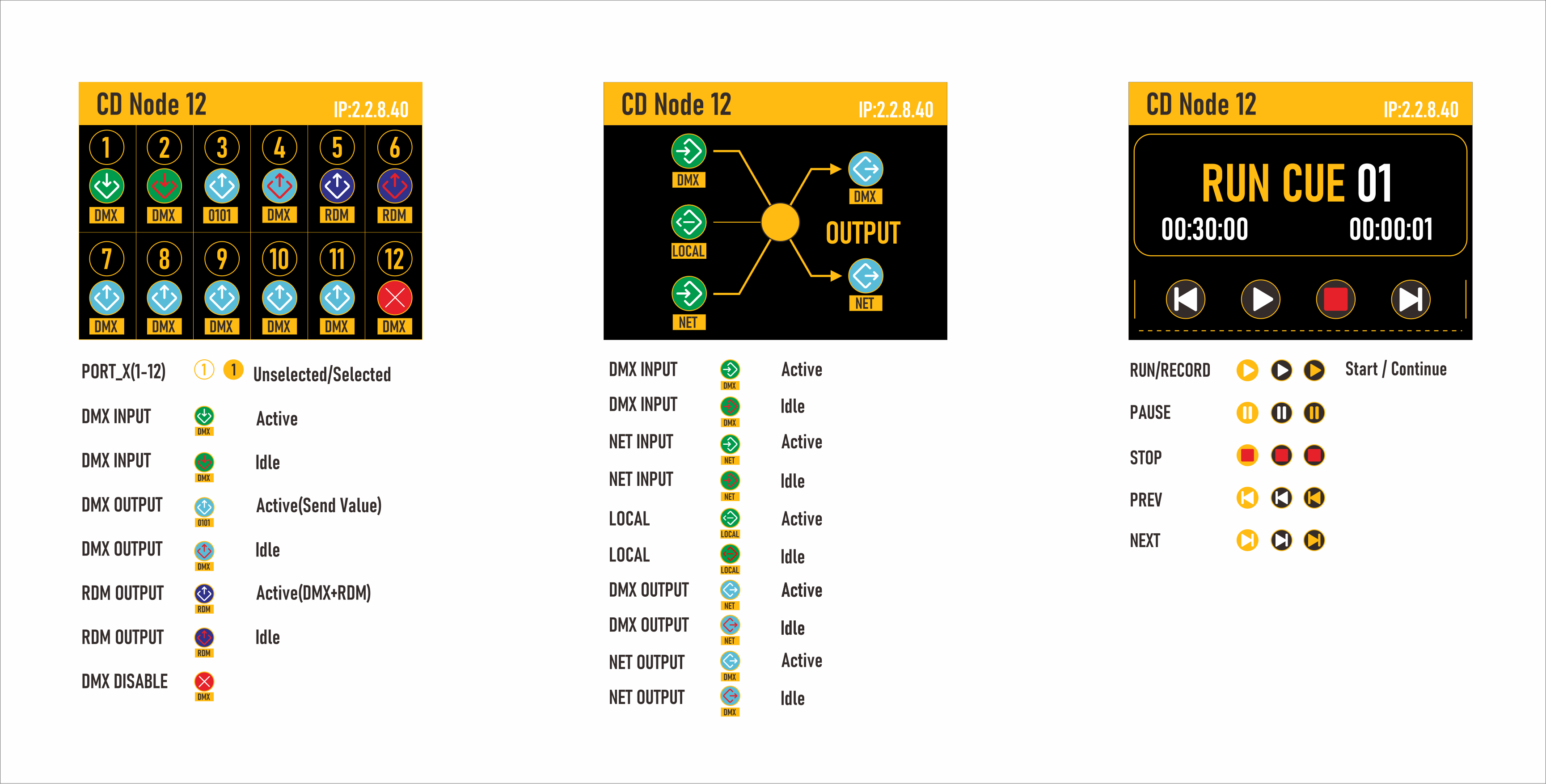 Each port can be set to Output, Input or Fallback. DMX Fallback is supported within a CD-Node and also between multiple CD-Nodes.